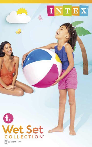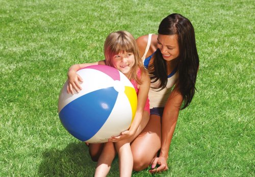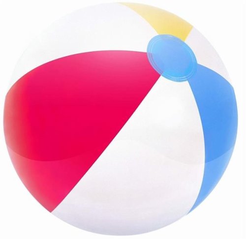 Nafukovací velký míč s barevnými pruhy. Vhodný do vody a nebo na plážový volejbal. Rozměr 61 cm. Vhodné od 3 let.