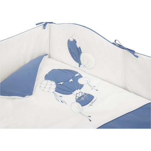 Krásná dětská bavlněná 6-dílná souprava do postýlky Belisima Ballons pro miminka. Souprava je zdobena balónky. Je vyrobena z měkkého, příjemného materiálu. Souprava obsahuje povlečení na polštářek cca 40x60 cm, povlečení na peřinku cca 100x135 cm, mantinel cca 180 cm, výplň polštářek a peřinka, nebesa. Materiál 100% bavlna.<BR>Tyto výrobky jsou bezpečné, protože:<BR>- přírodní bavlna nezpůsobuje odřeniny a podráždění, jelikož neobsahuje formaldehydy a další prvky, které kojencům škodí<BR>- neztrácí barvu a nezabarvuje oblečení<BR>- nabízené vzory jsou příjemné na pohled a mají uklidňující barvy<BR>- zipy používané u povlečení jsou tzv. "bezpečné zipy" bez volně visící koncovky, kterou by mohlo dítě utrhnout a spolknout<BR>- nejsou použity žádné knoflíky ani žádné další plastové nebo ocelové části, které mohou být pro Vaše dítě nebezpečné<BR>- materiál, který je používán pro výplně polštářů a přikrývek, je 100% protialergický, což znamená, že se v jeho vláknech nešíří žádné mikroorganismy ani plíseň.