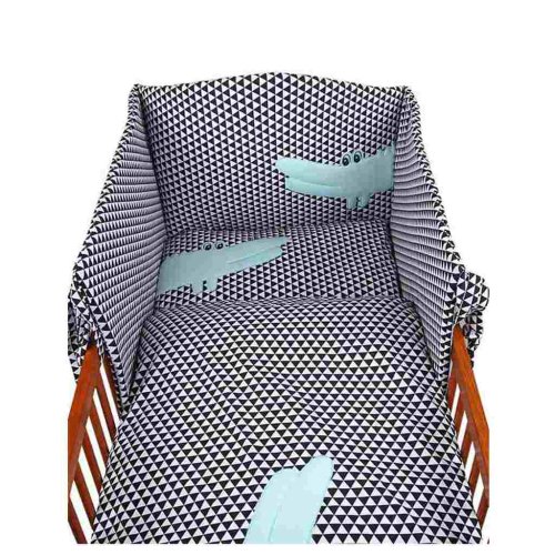 Dětská bavlněná 6-dílná souprava do postýlky Womar. Soupravu zdobí vyšívaný obrázek zvířátka a výrazný vzor. Je vyrobena z kvalitního,měkkého a příjemného materiálu. Souprava obsahuje povlečení na polštářek cca 38x58 cm, povlečení na peřinku cca 100x135 cm, mantinel cca 48x210 cm, nebesa cca 160x300 cm, polštář a peřinku. Složení: bavlna, polyester, výplň: 100% polyester.