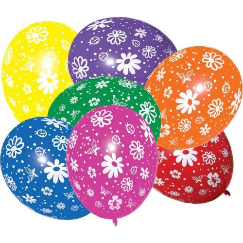 Balónky v barevném provedení s motivem kytiček. 7 ks v balení.