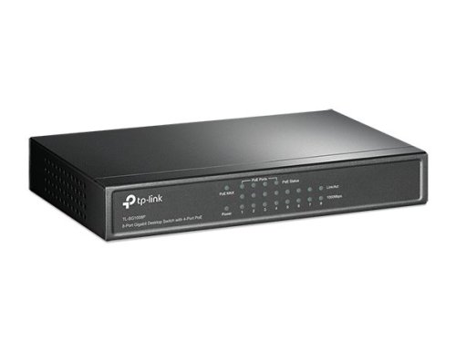 TP-Link TL-SG1008P je stolní switch vybavený osmi porty RJ-45 s rychlostí až 1000 Mbit/s jimiž poskytuje bezproblémové připojení k síti. 4 z 8 portů RJ-45 podporují funkci napájení přes Ethernet (PoE) s celkovým výkonem až 55 W. Tyto PoE porty umí automaticky detekovat a napájet zařízení vyhovující standardu IEEE 802.3af. V tomto případě je elektrická energie přenášena společně s daty v jednom kabelu. Díky tomu můžete rozšířit svou síť i mimo elektrické vedení nebo zásuvky tam, kam chcete umístit přístupové body, IP kamery, IP telefony apod.