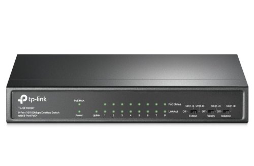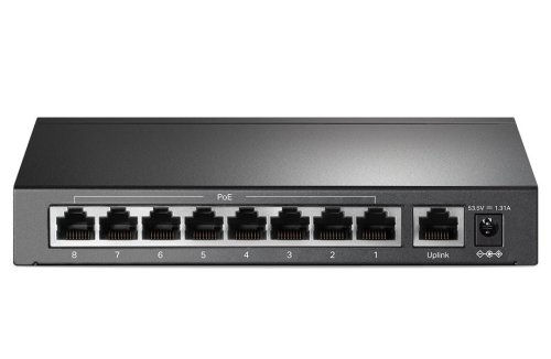 Profesionální 9portový 10/100 Mbps neřízený PoE+ switch, který nevyžaduje žádnou konfiguraci (Plug and Play) a je vybaven 8 PoE+ porty (802.3af/at) pro přenos dat i napájení.
