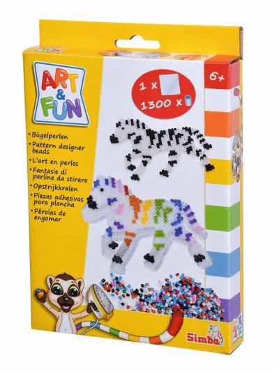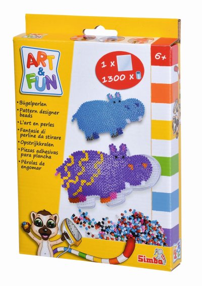 Zažehlovací sada korálků s motivy zvířátek, obsahuje 1300 korálků, 1 desku. 4 druhy motivů: slon, hroch, lev nebo zebra.
