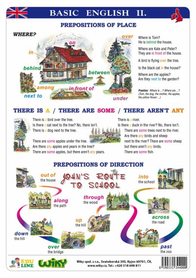 "Soubor naučných tabulí Basic English je určen především pro začátečníky na zvládnutí hodin angličtiny hravým způsobem, ale i na zopakování učiva a jeho procvičování. Doplňuje a ilustruje výklad učitele, přičemž usnadňuje zvládnutí učiva. II. díl rozšiřuje slovní zásobu o přibližně 100 nových slovíček. Také přibírá i nové gramatické prvky, a to základní pravidla užívání členů, pravidelné a nepravidelné množné číslo, stupňování, vazbu ""there is / are / arent"", předložky místa a směru. Větné pří