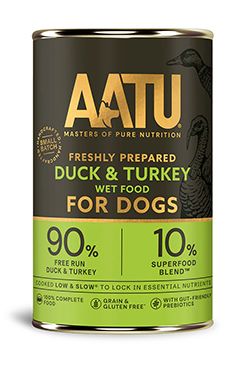 Kompletní superprémiové vlhké krmivo pro dospělé psy, obsahující 90 % kachního a krůtího masa.