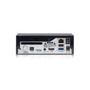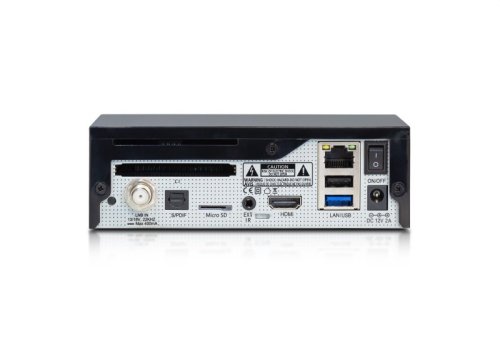 Technická špecifikácia 1x tuner DVB-S2X Procesor: QUAD CORE, 15 000 DMIPS Flash: 8GB EMMC RAM: 1GB DDR4 1x čítačka kariet 1x CI slot 1x HDMI 1x slot pre microSD kartu (možné nahrávanie na microSD kartu) 1x USB 3.0 + 1x USB 2.0 Video decoding: 4K x 2K@60 10-bit decoding, 1920 x 1080, 1280 x 720, 720 x 480, 720 x 576 HDR/HDR10 a HLG Transcoding: Multi transcoding a Multiroom podpora LED stavová dióda Ethernet RJ45: 10/100 Mbps S/PDIF optický digitálny audio výstup Video Format: 4:3 Letter Box, 4:3 Pan Scan, 16:9 Video Decoding: MPEG1, MPEG2, H264, H265 HEVC, CAVS, VP8, VP9 Audio Decoding: MPEG-1 layer I/II, PCB downmix, IEC958 SPDIF Left / Right / Stereo / Mono