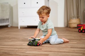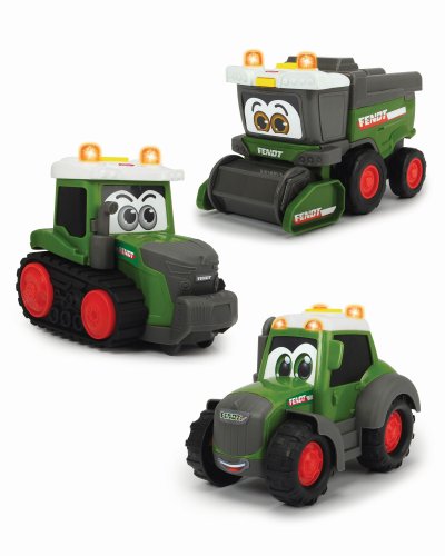 Zelené farmářské vozy pro nejmenší, s pohyblivými částmi, se světelnými a zvukovými efekty, pro rozvoj motorických dovedností. 3 druhy. Farmářské vozy jsou samozřejmě stálobarevné, odolné proti slinám, bez malých částí, které lze spolknout a se zaoblenými rohy. Délka 16 cm.