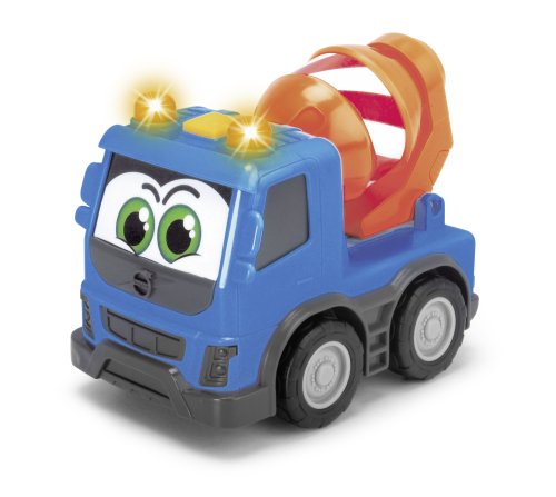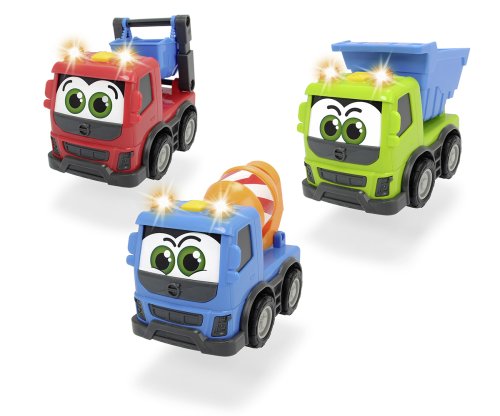 Veselé pracovní autíčko pro nejmenší, na volnoběh. Namalovaná očíčka, zvukový a světelný efekt. 3 druhy - sklápěčka, míchačka, nákladní auto. Délka 13 cm.