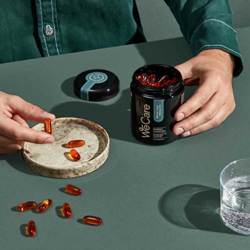 Doplněk stravy WeCare about your HEALTH - Omega complex obsahuje směs lososového, pupalkového a olivového oleje v jedinečné rovnováze omega-3-6-7-9 mastných kyselin. Vysoce kvalitně zpracovaný lososový olej je bohatým zdrojem omega-3 mastných kyselin, konkrétně kyseliny eikosapentaenové (EPA) a dokosahexaenové (DHA) a neesenciálních omega-7 a omega-9 mastných kyselin. Pupalkový olej je jedním z nejbohatších zdrojů omega-6 mastných kyselin, především kyseliny linolenové a gama-linolenové. DHA přispívá k udržení normálního stavu zraku a činnosti mozku. EPA a DHA přispívají k normální činnosti srdce. Vitamín D je v tucích rozpustný vitamin, který je nezbytný pro správnou funkci kostí, zubů, svalů a k podpoře imunitního systému. Tento doplněk stravy obsahuje také astaxanthin, přírodní karotenoid známý svou přítomností v lososím pigmentu.