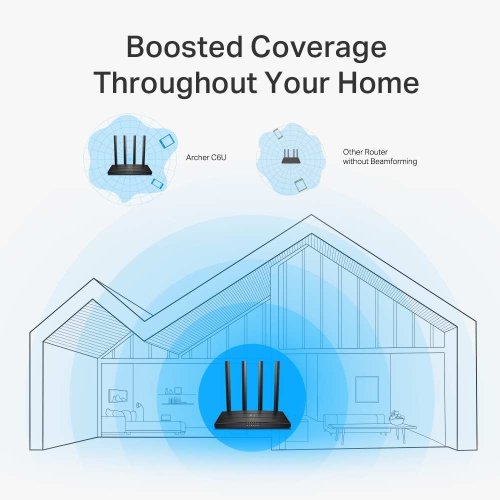 TP-Link Archer C6U je dual-band router z nové generace s podporou starších Wi-Fi standardů 802.11ac/b/g/n. Umožní tak komunikovat přenosovou rychlostí až neuvěřitelných 300 MB/s (2,4GHz) a 867 Mb/s (5GHz). Jak pásmo 2,4 GHz, tak i pásmo 5 GHz jsou ideální pro streamování ve 4K, online hraní a rychlé stahování rozličných souborů. Dle protokolu 802.11ac však zařízení dokáže operovat s maximální přenosovou rychlostí až 1,2 GB/s.