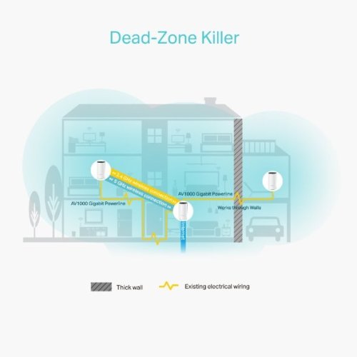 AC1200 Whole Home Hybrid Mesh Wi-Fi System SPEED: 300 Mbps at 2.4 GHz + 867 Mbps at 5 GHz + 1000 Mbps Powerline SPEC: 2×