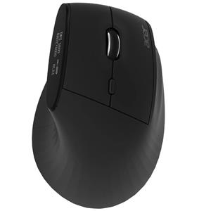 Acer Smart Fit Vertical Mouse - Black, Wireless RF 2.4GHz + BT (2x) + USB, vertikální (pro praváky), citlivost 8000 DPI (5 stupňů 1600-8000), 10 tlačítek, RGB podsvícení (11 módů), dosah 10 m, USB-C nabíjení, Li-ion baterie 850mAh, výdrž až 120 hodin, nabíjecí čas 2,5 hodiny, rozměry 118 x 79 x 59 mm, 115 g, Win/macOS/Chrome OS, retail pack