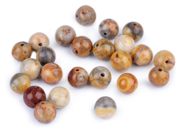 Přírodní minerální korálky ze žlutého achátu jsou oblíbené především šperkaři pro svou jedinečnou kresbu a barvy. Svou velikostí jsou ideální na výrobu Buddhových náramků. Jsou oblíbené na techniku drátování, v kombinaci s drahými kovy, ale i s obyčejnými drátky. Skvěle vypadají i na jednoduchých návlekových šňůrách , které svým přírodním složením ozvláštní.