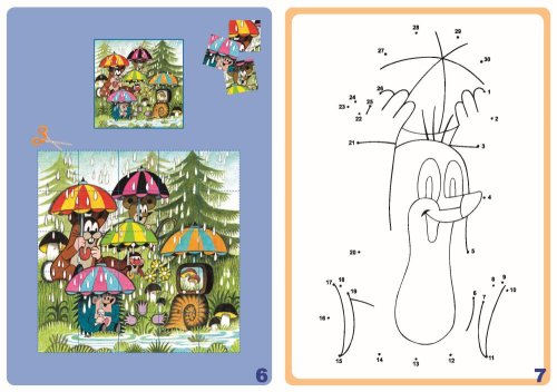 obálka s lesklou povrchovou úpravou + 24 vnitřních stran + samolepky, na každé stránce jsu aktivní prvky spojené s poznáváním barev, tvarůb včetně písmen a číslic, jednoduchého počítání, hlavolamy, bludiště, dětské sudoku atd., pro kontrolu správnosti je uvedeno správné řešení