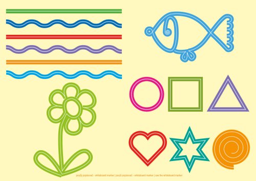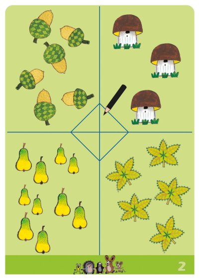 obálka s lesklou povrchovou úpravou + 24 vnitřních stran + stíratelná tabule, na každé stránce jsu aktivní prvky spojené s poznáváním barev, tvarůb včetně písmen a číslic, jednoduchého počítání, hlavolamy, bludiště, dětské sudoku atd., pro kontrolu správnosti je uvedeno správné řešení