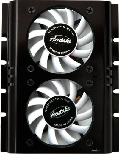 Kvalitní supertichý chladič pro chlazení 3,5" pevných disků o hlučnosti jen 15,6dB/A s dvěmi aktivními 60x60x10mm ventilátory s novými Hypro Bearing ložisky a třípinovými konektory umožňujícími pohodlný monitoring funkčnosti případně regulaci otáček ventilátoru.
