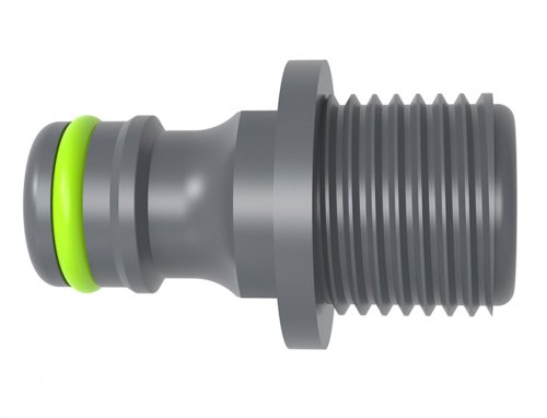 Adaptér na 1/2 palcový kohoutek s vnějším závitem. Prvek zahradních armatur určených k připojení hadic ke kohoutku nebo jinému zdroji vody pomocí rychlospojek. Kompatibilní s armaturami jiných výrobců. Adaptér vyznačující se vysokou odolností a životností. Produktová řada: Start. Materiál: ABS plast. Velikost: 1/2 palce. Barva: šedá-zelená.