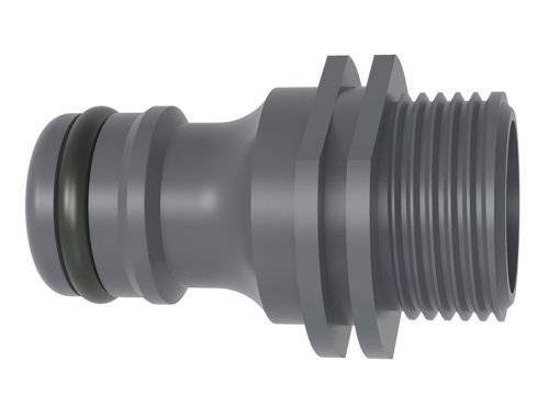 Adaptér na 3/4 palcový kohoutek s vnějším závitem. Prvek zahradní armatury určený pro spojování nebo opravy hadic pomocí rychlospojek s větším průtokem vody. Kompatibilní s armaturami jiných výrobců. Adaptér vyznačující se vysokou odolností a životností. Materiál: ABS plast. Produktová řada: Start. Velikost: 3/4 palce. Barva: šedá.