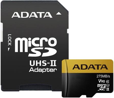 Extrémně rychlá a odolná paměťová karta typu micro SDXC (UHS-II) U3, kapacita 64 GB, rychlost čtení/zápis až 275/155 MB/s, vhodná pro moderní smartphone, tablety, ale také fotoaparáty, kamery či drony, vhodná také pro použití v extrémních podmínkách + adaptér na SD.