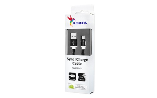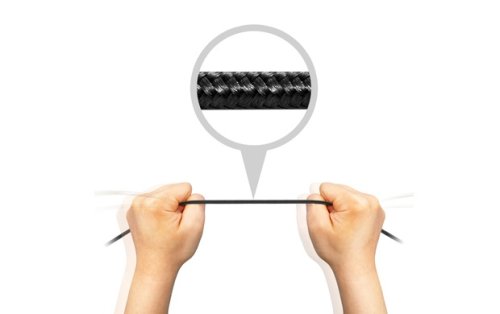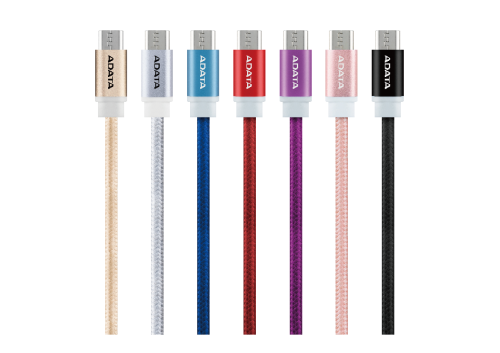 Klasický kabel s micro USB konektorem na jedné straně a velkým USB konektorem na druhé straně se liší zářivými barvami, hliníkovým krytem konektoru a kabelem potaženým tkaninou, která chrání kabel proti ohnutí a zamotání.