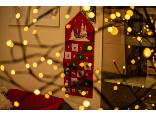 Vneste do svého domova vánoční atmosféru s tímto adventním kalendářem z filcu. Barevný design s 24 kapsičkami vám umožní každý den potěšit děti i dospělé malou drobností nebo sladkostí. Kalendář lze snadno zavěsit na zeď nebo dveře a zůstane vám i pro další roky. Skvělý způsob, jak vytvořit kouzelnou adventní tradici.
