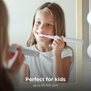 Dětské zuby potřebují šetrnější péči. Až 30 000 vibrací za minutu je ideální pro péči o dětské zuby, nepoškozuje je a sonická technologie je dokonale čistí.