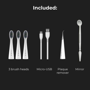 V balení: 3 hlavice, odstraňovač plaku, zrcátko