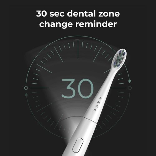 Inteligentní systém, kterým jsou zubní kartáčky AENO vybaveny, vám okamžitě připomene, že je třeba 4x za 30 sekund změnit zónu čištění zubů pro účinnější hygienu