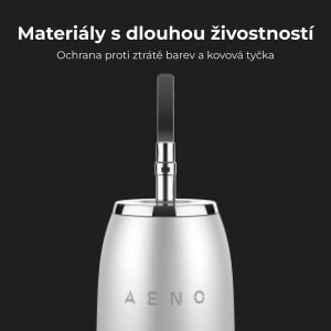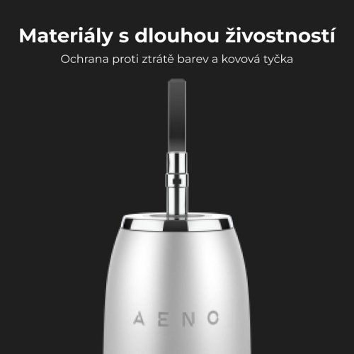 Sonické zubní kartáčky AENO jsou vyrobeny z odolných a spolehlivých materiálů. Tělo přístroje má ochranu proti vyblednutí barvy a uvnitř obsahuje pevnou kovovou stopku.