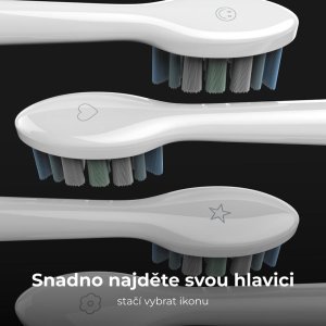 Ikony umožňují celé rodině používat kartáčky značky AENO s různými nástavci - stačí vybrat ikonu, aby každý přesně věděl, kde se nachází jeho kartáčková hlava. Je to jednoduché a srozumitelné i pro děti.