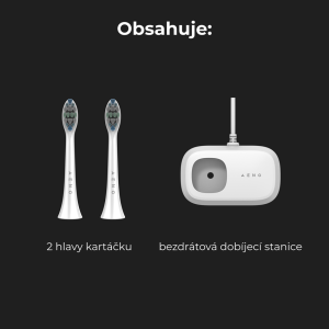 Sonické zubní kartáčky AENO se dodávají s bezdrátovou nabíjecí základnou, takže stačí kartáček nechat v základně a je vždy připraven k použití. Přibližně 5 hodin bezdrátového nabíjení zajistí plné nabití.