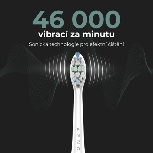 Inteligentní systém, kterým jsou zubní kartáčky AENO vybaveny, vám okamžitě připomene, že je třeba 4x za 30 sekund změnit zónu čištění zubů pro účinnější hygienu.