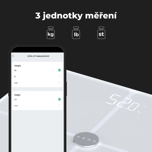 Chytrá osobní váha AENO BS1S je navržena tak, aby vyhovovala širokému spektru uživatelů a může se pochlubit vysokou nosností až 180 kg. Tato robustní konstrukce zajišťuje, že se každý bez ohledu na velikost může spolehnout na přesné a konzistentní měření. Ať už jste vzpěrač těžkých vah, nebo teprve začínáte svou fitness cestu, naše váhy vám poskytnou potřebnou podporu.