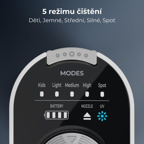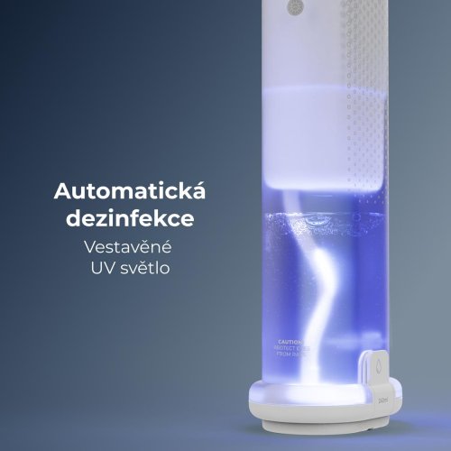 Hygienu zvyšuje vestavěné UV světlo, které automaticky dezinfikuje trysky po použití. Tato špičková funkce zajišťuje, že vaše ústní sprcha zůstane vždy čistá a připravená pro další použití.