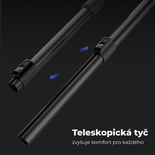 Kovovou trubici lze posunutím nastavit na požadovanou délku pro pohodlé vysátí všech prostor.