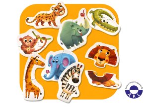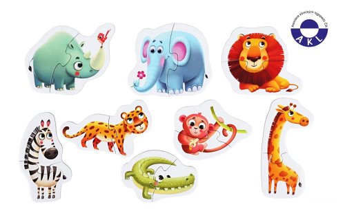 Puzzlika, nová značka puzzlů s moderním kreativním designem, přináší pro malé děti aktivní učení formou zábavné hry. Naučné puzzle Africká zvířátka obsahuje 16 velkých pevných puzzlů, ze kterých poskládáte 8 samostatných obrázků zvířátek žijících i v safari parku. Naučné puzzle je skvělá hra pro malé děti, která u nich rozvíjí logické myšlení, představivost, kreativitu, jemnou motoriku a různé poznávací znalosti. Puzzle jsou vyrobeny z velice pevného vícevrstvého kartonu s lesklým povrchem. Karton byl vyroben z kvalitního, ekologicky pěstovaného dřeva. Puzzle je možné otřít vlhkým hadříkem. Nevhodné pro děti do 2 let. Vyrobeno v Evropě.Věk 2+