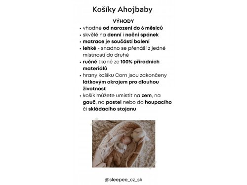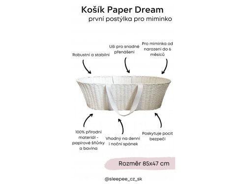 Mojžíšův košík pro miminko Paper Dream White od značky Ahojbaby je dodáván včetně certifikované matrace s pratelným potahem Basic. Košík je vhodný pro miminka od narození. Je lehký, skladný a snadno se přenáší, takže můžete mít miminko neustále nablízku. Košík poskytuje děťátku bezpečné místo k dennímu odpočinku i nočnímu spaní. Je vyrobený ze 100% přírodního materiálu a je ručně tkaný.