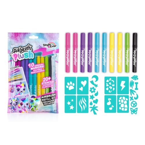 Náhradní originální barevné náplně do airbrushe. Součástí balení je 10 barev a 20 šablon. Vhodné pro děti od 6 let.