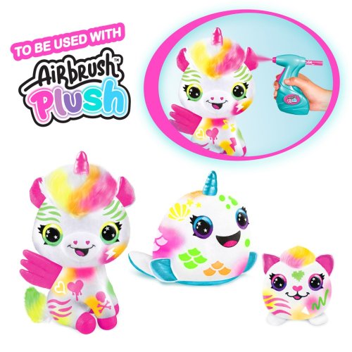 Náhradní originální barevné náplně do airbrushe. Součástí balení je 10 barev (5 barev + 5 neonových barev) a 20 šablon.<br> Vhodné pro děti od 6 let.