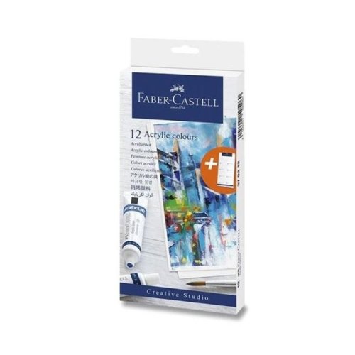 Vysoce pigmentované světlostálé akrylové barvy Faber-Castell mají intenzivní barvy a vzájemně mísitelné odstíny Součástí sady je šablona pro vytvoření vzorníku barev Po zaschnutí jsou barvy voděodolné …