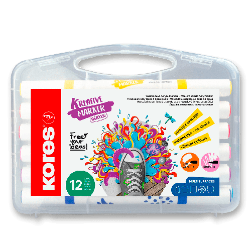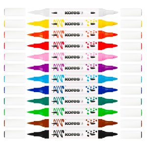 Sada 12 barev akrylových oboustranných popisovačů Kores Kreative Marker.