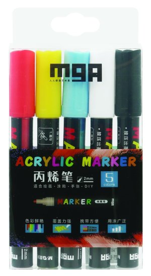 Dekorační akrylové popisovače svítící ve tmě jsou vhodné na jakýkoli materiál, například kámen, keramiku, sklo, plátno, kov či plast a další. Rychle schnou a po zaschnutí jsou fixy voděodolné. V balení je 5 barev. Rozměr balení: 9 x 12 cm Není hračka.