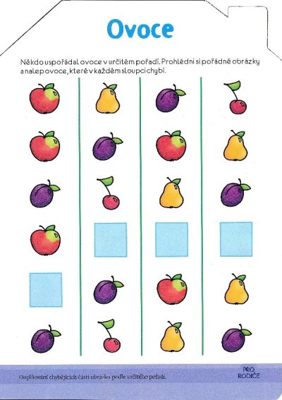 Série knížek pro děti ve věku od 2 do 5 let. Rozvíjení zrakové pozornosti, logického myšlení a představivosti. Doplněno o nálepky.