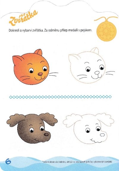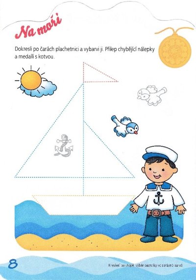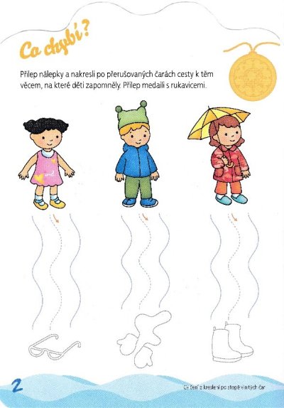 Nejlepší přípravou, jak naučit děti psát první písmenka, je kreslení a psaní po stopě. Když děti kreslí, učí se správně držet tužku, kreslí první čáry, oblouky, a tím si rozvíjejí trpělivost a přesnost. Čím šikovnější ručičky si vycvičí, tím snadněji se jim budou psát první písmenka a slovíčka. Zajímavé úkoly, barevné ilustrace a nálepky jsou dobrou motivací k jejich práci.