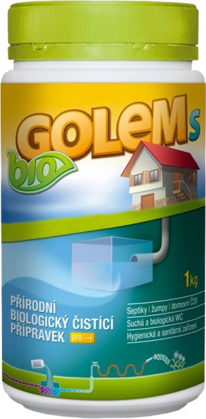 Bio Golem do septiku je biologický přípravek k likvidaci organických látek v suchých záchodech, septicích a jímkách. Aplikujeme po aktivaci (30 min.) ve vlažné vodě. Doporučené dávkování a aplikace na 1 m3: startovací fáze -100 g / týden, stabilizační fáze 200 g / 3 týdny, udržovací fáze 100 g / měsíčně do konce sezóny.