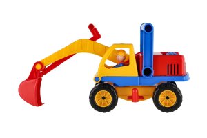 Aktivní bagr z kvalitního plastu a velmi pevnou stavbou. Plně mechanicky funkční. Délka bagru: 32 cm.