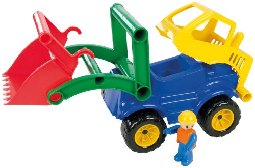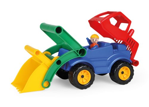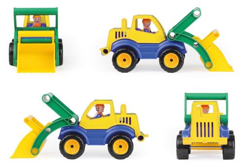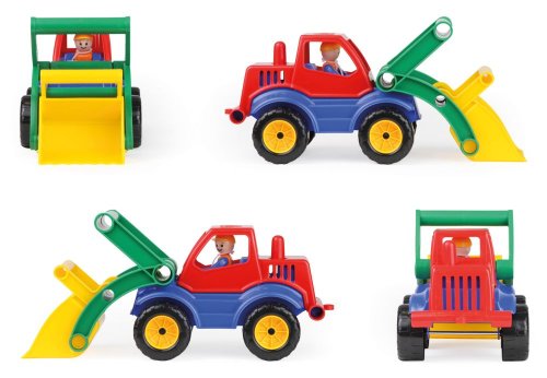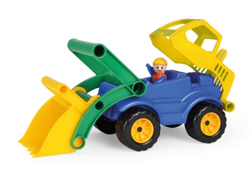 Aktivní nakladač z kvalitního plastu a velmi pevnou stavbou. Je plně mechanicky funkční. Obsahuje odklopitelnou kabinu s aktivním panáčkem. Délka cca 30 cm. Vhodné pro kluky od 3 let.