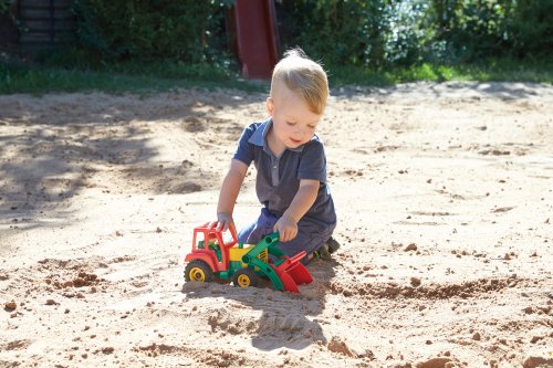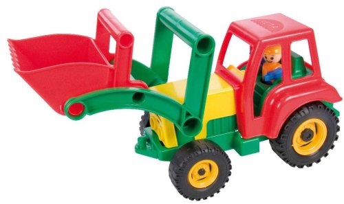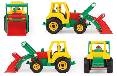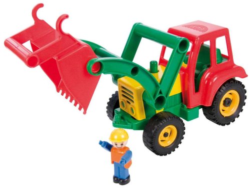 Aktivní traktor se lžící z kvalitního plastu a velmi pevnou stavbou. Plně mechanicky funkční. Obsahuje odklopitelnou kabinu s aktivním panáčkem. Velikost: 35x18x15 cm. Vhodné pro kluky od 3 let.