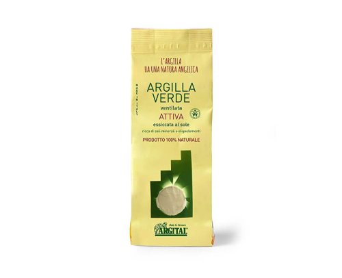 Aktivní zelený jíl vysušený sluncem „Ventilated“ je velmi jemně mletý zelený jíl sterilizovaný horkým vzduchem.