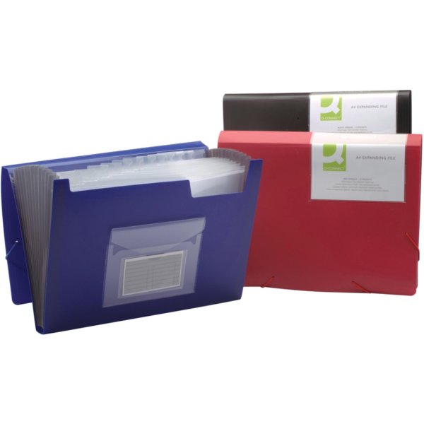 Aktovka Q-Connect, A4, 13 přihrádek, transp. červ.